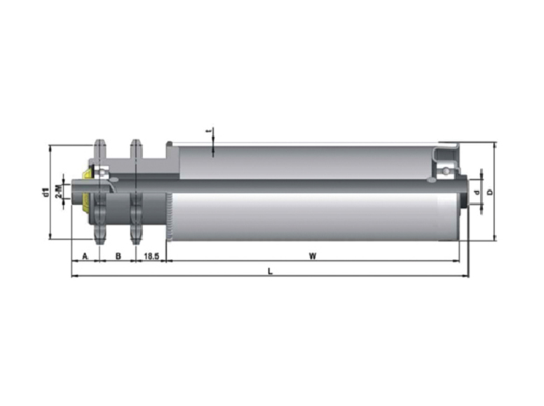 鋼製鏈輪與筒體焊接成一體。使其可以傳遞更高的扭矩,能夠適應重型托盤輸送的要求